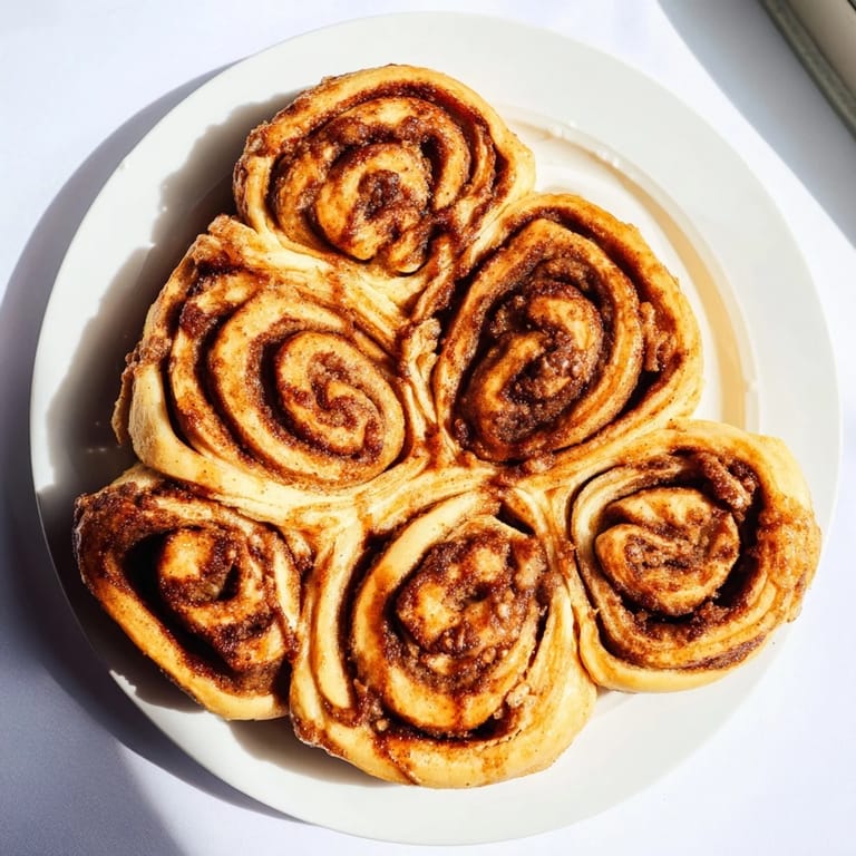 A cinnamon sugar mixture is spread over softened butter on rolled dough, then rolled and twisted to expose the swirl layers when baked.