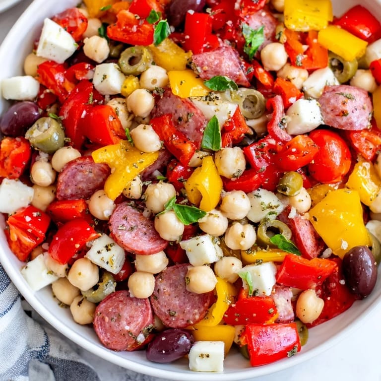 Save The first time I brought this chopped salad to a summer potluck, my friend Sarah actually asked for the container to take home what was left. That's when I knew this wasn't just another pasta salad pretending to be exciting. Something about the crunch of pepperoncini against creamy mozzarella, the way salami brings that perfect savory punch, and how chickpeas make it feel substantial without being heavy. It's become my go-to when I need something that feels festive but comes together in under twenty minutes.