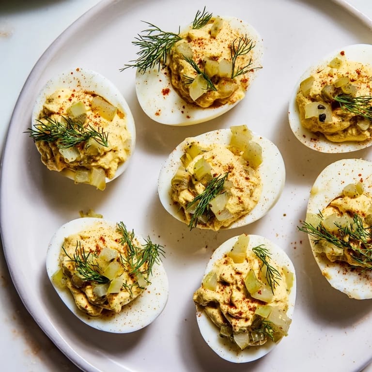 Save My neighbor brought over a jar of homemade dill pickles one summer, and I had no idea what to do with them until I experimented with deviled eggs. The tanginess transformed something I'd made a hundred times into something people actually fought over at potlucks. Now I make these whenever I need to impress without breaking a sweat.