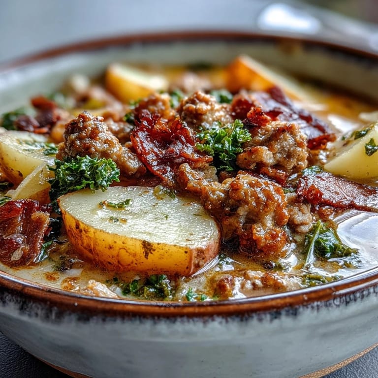 Save Italian Sausage Soup is a hearty and comforting Italian-inspired dish that brings the classic restaurant experience to your home kitchen. This soup combines savory Italian sausage and crispy bacon with tender potatoes and fresh kale in a rich, creamy broth, making it a perfect meal for a cozy night in.