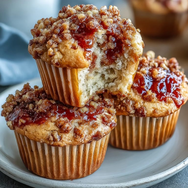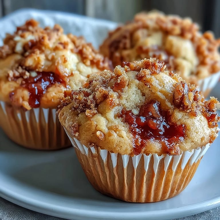 Save There's something about the smell of peanut butter warming in the oven that instantly transports you to childhood, except these muffins taste like someone actually paid attention in pastry school. My neighbor brought over a jar of homemade guava preserves one afternoon, and instead of the polite thank-you-I'll-use-this-eventually response, I found myself stirring peanut butter into melted butter at seven in the morning, convinced that combining two of life's greatest flavors deserved immediate investigation. These muffins emerged from that spontaneous kitchen experiment looking almost too professional for how easy they were to make, with ribbons of guava peeking through tender crumb and that unmistakable peanut butter richness binding everything together.