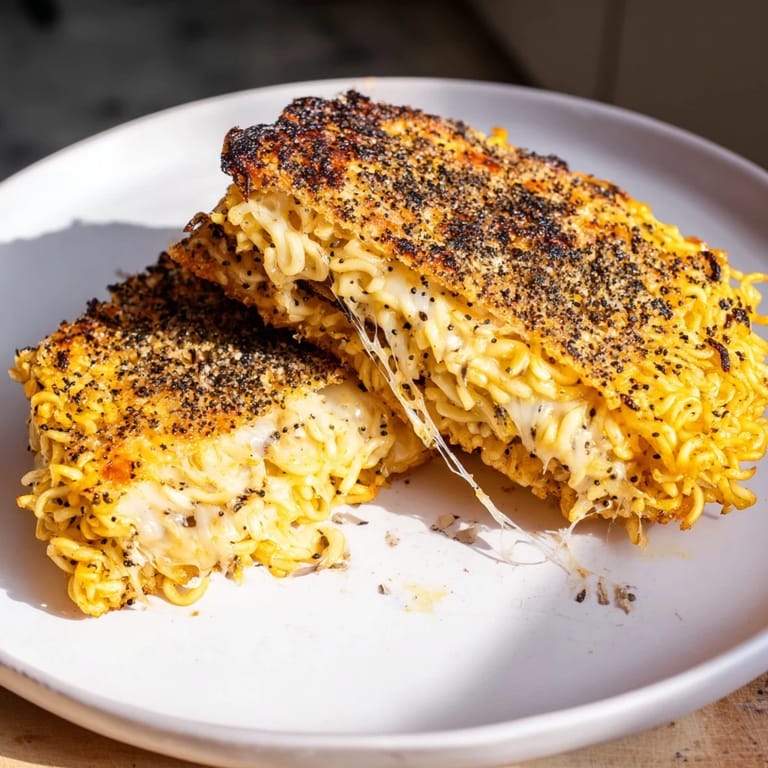 Save The first time I made this, I was standing in my kitchen on a lazy Saturday afternoon with a half-empty pantry and zero appetite for another boring sandwich. I'd just discovered that ramen noodles could crisp up into something surprisingly sturdy, and melted cheese seemed like the obvious next step. What started as kitchen improvisation turned into something my friends now request by name—proof that the best dishes often come from happy accidents and willingness to break the rules.