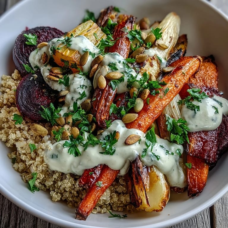 Save There's something almost meditative about watching root vegetables transform in a hot oven—the kitchen fills with this earthy sweetness that makes you forget you're eating something so good for you. I discovered this bowl during one of those weeks when my fridge was overflowing with farmers market finds and my energy for complicated cooking was at zero. What started as me just roasting whatever needed to be used became this beautifully balanced meal that somehow feels both nourishing and indulgent at the same time.