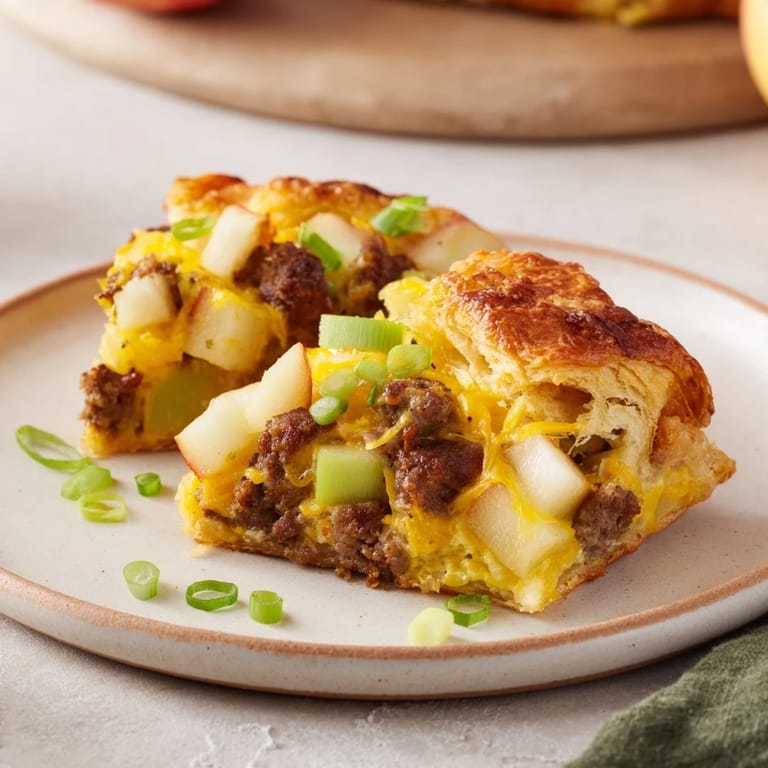 Save A hearty, rustic skillet scone featuring juicy apples, savory sausage, and sharp cheddar baked to golden perfection — ideal for brunch or a cozy supper.