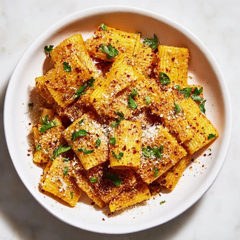 Save Crispy, golden pasta chips tossed with zesty lemon, Parmesan, and a kick of chili, perfect for snacking or entertaining.