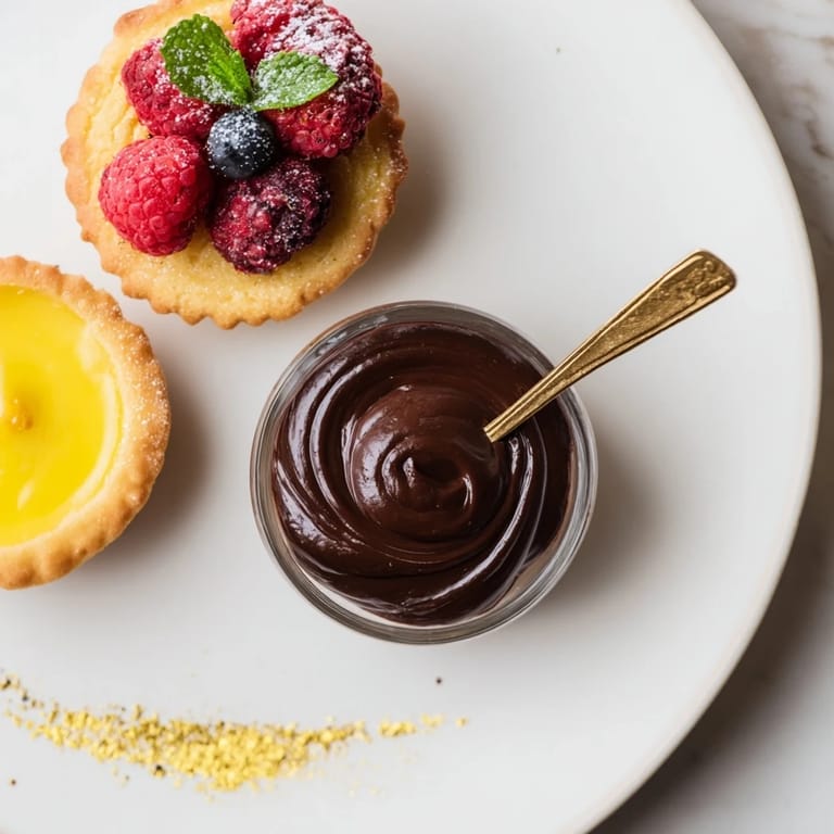 Each element of this assiette de desserts is crafted to showcase balance and finesse. The rich chocolate mousse is airy yet intense, the lemon tartlets bring a fresh citrus burst with a crisp shell, and the financiers are subtly nutty with a sweet raspberry center. Together, they create a harmonious dessert experience, enhanced by optional gold dust and fresh berries for a dazzling presentation.